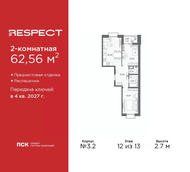 Продается 2-комн. квартира с отделкой в ЖК "RESPECT" на 13 этаже. Общая площадь: 60.65 кв.м., жилая: 26.37 кв.м., площадь просторной кухни-столовой: 13.45 кв.м. Комнаты изолированные, все окна выходят на одну сторону. В квартире один балкон и одна лоджия, один совмещенный и один раздельный санузел. Высота потолков 2.7 м. Дом монолитный, многоподъездный, высотой 13 этажей. Квартира находится в 1-й секции в корпусе 2. На этаже 7 квартир. В подъезде 1 пассажирский и 1 грузовой лифт. Окончание строительства - 1 квартал 2026 года. Оформление сделки по договору долевого участия. В шаговой доступности от жилого комплекса расположены станции метро (расстояние по прямой): "Лесная" (800 м), "Площадь Мужества" (1.4 км), "Выборгская" (1.9 км), также недалеко от этого корпуса расположены станции метро: "Академическая", "Политехническая". Жилой квартал "RESPECT" строится на Полюстровском пр, 87, в одной из самых востребованных локаций Петербурга. В 10 минутах пешком - метро "Лесная" и в 10 минутах на транспорте - Петроградская сторона. Высота домов от 7 до 13 этажей. Квартиры сдаются с отделкой white box и с чистовой отделкой. На территории Respect строится школа на 1125 учащихся и детский сад на 240 мест. Запроектированы собственная газовая котельная, закрытая территория, дворы без машин и подземные паркинги с лифтами. В проекте предусмотрены трапециевидные балконы или остекленные лоджии, которые, с одной стороны, исключают монотонность фасада, являясь декоративными элементами, с другой дополнительным функциональным пространством в квартирах. Цветовая гармония фасадов каждого дома раскрывает характер квартала. Коричневый цвет клинкерного кирпича со структурой водяных штрихов — цвет уюта и безопасности, сдержанности и надёжности. Вентилируемые фасады облицованы клинкерным кирпичом. Его высокая прочность позволяет давать 100 лет гарантии на этот материал. Водопоглощение клинкерного кирпича составляет менее 5%, за счет чего у него высокая теплопроводность и прочность. В квартале запроектированы внутренние закрытые территории дворов домов без доступа автомобилей и безбарьерная среда для велосипедистов и колясок. Предусмотрены IP-домофония с функцией дистанционного открывания калиток и парадных, а также дистанционный сбор показаний счетчиков и мобильное приложение для жителей. Для безопасности жителей квартала - круглосуточное видеонаблюдение и служба охраны. В каждой квартире предусмотрены внешние корзины для кондиционеров. Вся территория квартала будет связана единой концепцией благоустройства, разработанной ландшафтным бюро L.BURO. На эксплуатируемой кровле на уровне первого этажа в домах 1 и 4 будут обустроены общественные видовые террасы. Это станет не только привлекательным местом с красивым видом, но и удобным, многофункциональным пространством. Дизайн парадных зон и входных групп - сочетание лаконичности отделки и декоративных элементов с текстурами из натурального камня и дерева с приглушенной подсветкой теплым светом. Во входных г Продается 2-комнатная квартира элитные на проспекте Полюстровский в Санкт-Петербурге.