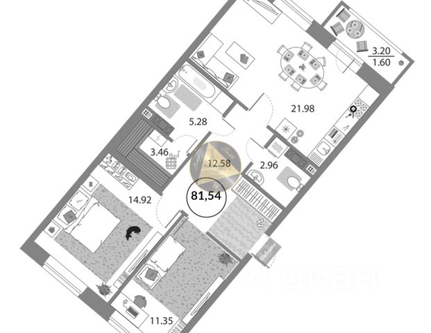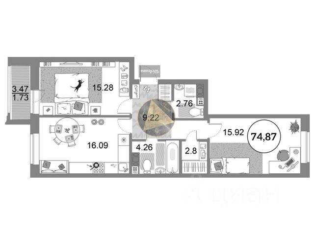 Арт. 99256025 Продается квартира 3 евро, в ЖК Modum, с шикарной и редкой планировкой.