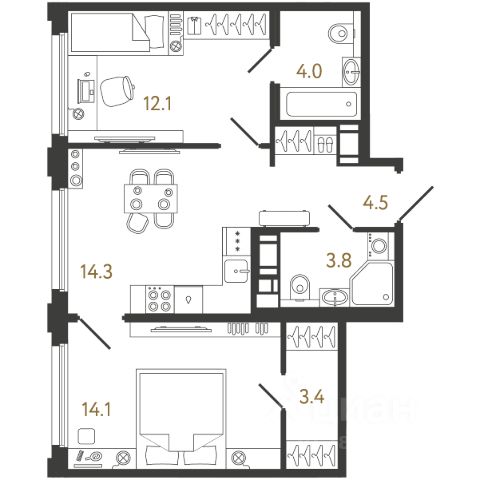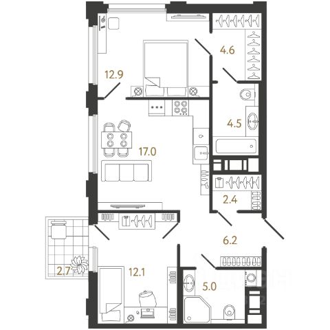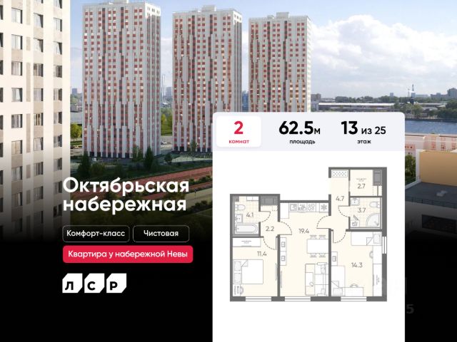 Новый дом "Гений" строится на правом берегу Невы в зелёной локации на проспекте Большевиков. До метро "Улица Дыбенко" — 10 минут пешком, столько же на авто до Володарского моста и набережной. До выезда на КАД и до площади Александра Невского — 20 минут. Жить в окружении знакомых улиц, парков и скверов, где в пешей доступности с десяток школ и детских садов, а до главного проспекта Петербурга полчаса пути — гениально, не правда ли? Строительство ведётся в две очереди. В трёх корпусах I-й очереди (от 14 до 20 этажей) — 611 квартир от студий до четырёхкомнатных. Есть эксклюзивные квартиры с эркерами и террасами. На последних этажах квартиры с потолками 3 метра. Все квартиры продаются с отделкой White Box. Фишка дома — приватный двор с двумя дворами, объединенными парящим мостом. Любители уединённого отдыха могут гармонизироваться в зелёных кабинетах среди цветущих деревьев или путешествовать сквозь пространство и время посредством буккроссинга — во дворе появится библио-беседка. Энерджайзеры смогут поработать и организовать комьюнити-активности в импровизированном уличном коворкинге с круглым столом или позаниматься на профессиональных outdoor-тренажёрах и степ-платформах. Детские площадки от АФА х Richter RUS тоже на территории обоих дворов. В правом появится домик "Мечтатели" с большой песочницей, брёвнами-балансирами и витражным окном. А в левом появятся сразу три площадки: "Головоломка" с лазательным лабиринтом, "Волна" с уникальным музыкальным игровым оборудованием и переговорными трубами, "Вращение" с большой качелей. Пространства дворов соединит пешеходный мост. Под ним проложат зелёный променад, где можно будет вздремнуть в гамаке, загорать и ловить солнечных зайчиков, любуясь зеркальными множествами, устраивать семейные пикники в бранч-зоне под навесом. Как и дворы, бульвар полностью без машин, охраняется 24/7 и доступен только для жителей по индивидуальному цифровому ключу. Внутри дома концепция продолжится в интерьерах лобби, которые воссоздают футуристичные кабинеты гениальных изобретателей 70-х годов. Для каждой очереди — своё двухровневое лобби с ДНК-лестницей и акцентными светильниками, стойкой ресепшн, welcome-зоной, переговорной и кофепоинтом. В четвёртом корпусе (строится в I-й очереди) появится клуб-гостиная с Wi-Fi, которая трансформируется в коворкинг. Для жителей оборудуют подземный паркинг с лифтом на жилые этажи: 601 машиноместо, среди которых 32 — с зарядкой для электромобилей. В каждой парадной — вместительные колясочные. Дом "Гений". Пространство гениальных открытий Продам 2-комнатную квартиру элитные на проспекте Большевиков в Санкт-Петербурге.