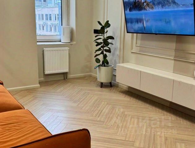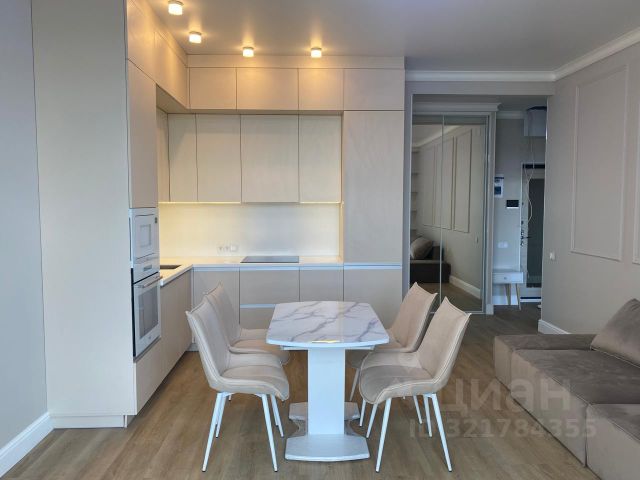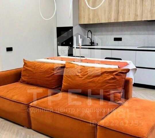 ВМЕСТИТЕЛЬНАЯ кухня-гостиная площадью 20,7м² правильной прямоугольной формы. На полу выложена инженерная доска и КЕРАМОГРАНИТ. В кухне ДИЗАЙНЕРСКИЙ кухонный гарнитур со встроенной бытовой техникой выполненный на заказ. Имеются электрические ТЕПЛЫЕ ПОЛЫ.