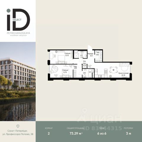 Клубный квартал iD Petrogradskaya на ул. Профессора Попова, 38 объединяет современную архитектуру, удобные планировки и развитую инфраструктуру, предлагая комфортную жизнь в престижном районе Санкт-Петербурга. Из квартир открываются виды на Иоанновский монастырь и реку Карповку. В шаговой доступности три станции метро: "Петроградская", "Чкаловская" и "Чёрная речка". 3-метровые потолки и эксклюзивные планировки создают атмосферу простора и уюта. Внутреннее пространство квартала включает благоустроенные дворы, курдонёры и подземный паркинг. Квартиры площадью от 20 до 136 м² с кухнями-гостиными до 40 м² и террасами с панорамными видами сдаются без отделки, оставляя свободу для индивидуальных интерьерных решений. Рядом ведущие вузы (ЛЭТИ, ИТМО), школы, детские сады, спортивные клубы, Ботанический и Вяземский сады. Удобный выезд на ЗСД, 10 минут до аэропорта Пулково. На территории квартала - кафе, рестораны, медицинские центры, детские и спортивные площадки. 2-комнатная квартира элитные на улице Профессора Попова в Санкт-Петербурге.