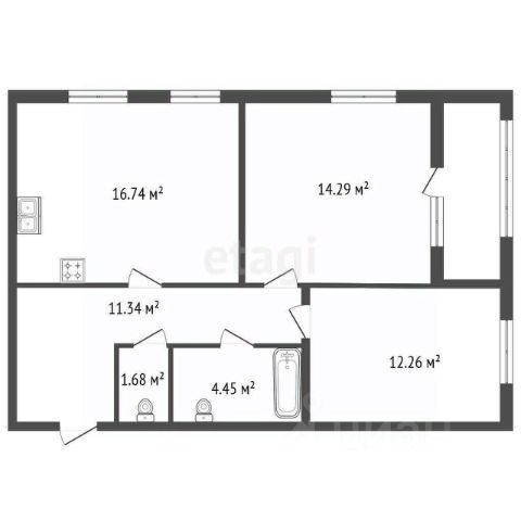 жилая площадь: 35,2 кв. м (18,8 + 16,4)