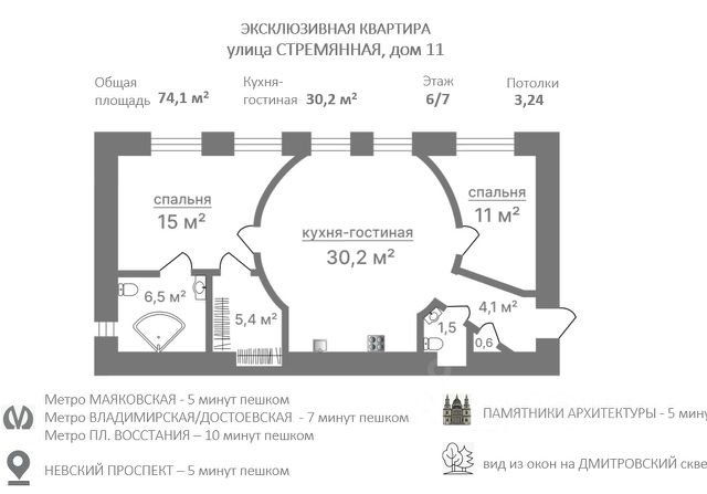 • ✓ В базе Циан 1 элитных 2-комнатных квартир на проспекте Владимирский в Санкт-Петербурге