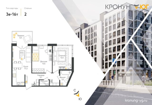 Продаётся двухкомнатная квартира на 1 этаже жилого комплекса Кронунг ЮГ, с большой террасой 6.5 кв.м. Высота потолков: 4,7 м. Квартира продается с чистовой отделкой и включает в себя оклейку стен обоями,ламинат на полу , установлены межкомнатные двери и сантехника в санузле. Кронунг ЮГ- современный жилой комплекс комфорт-класса на берегу реки Дудергофки. Невысокая этажность, современная архитектура. Благоустроенный внутренний двор будет включать в себя спортивные площадки, в том числе памп-трек, места для отдыха, прогулочные зоны, детские игровые площадки, места для выгула собак, шезлонги вдоль берега реки Дудергофки. Для автомобилей предусмотрен трехэтажный отдельно стоящий паркинг и парковочные места с зарядными станциями для электромобилей на территории ЖК. Локация: • 1 минута до автобусной остановки • 20 минут до метро • 5 минут до КАД