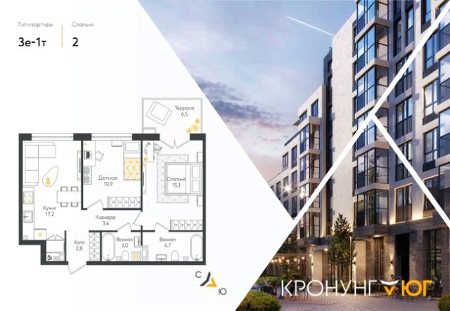 Продается стильная и уютная 2-комнатная квартира в современном ЖК Краски Лета!
