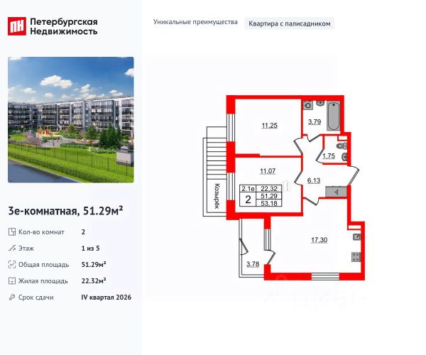 Продается уютная 2-комнатная квартира от застройщика в жилом комплексе "Univer City" в на юге Санкт-Петербурга. До метро можно добраться на транспорте всего за 30 минут. Удобная, классическая, функциональная европланировка, большая кухня-гостиная 15.04 м², вместительная прихожая 7.4 м². Общая площадь квартиры - 49.29 м², жилая 21.19 м², высота потолка 2.77 м. Квартира продается с отделкой "NORD LINE WHITE". Что особенного в ЖК "Univer City"? • Малоэтажное строительство • Скандинавские фасады с отделкой керамогранитом, акцентные входные группы • Закрытые внутренние дворы без машин • Пешеходный променад с тематическими зонами, еловый сквер и яблоневый сад • Univer Park, включая SetlSport и SetlKids, площадку для выгула собак и зоны отдыха • Инновационный Лицей Setl с оригинальной архитектурной концепцией и уникальной образовательной средой