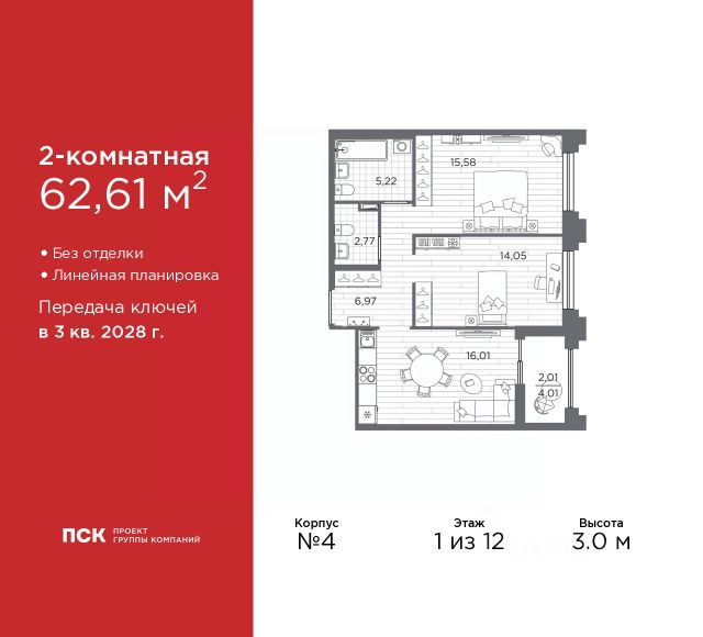 Застройщик возводит комплекс по стандарту Э4, который направлен на повышение энергоэффективности, эргономики, экологии и экономии. В квартирах установят широкоформатные окна с защитными детскими замками. Балконы и лоджии - глубокие "финские", с остеклением в пол. Высота потолков - от 2,7 метра; подъезды оборудуют малошумными лифтами типа KONE. Жильё будут передавать с предчистовой отделкой white box, можно заказать ремонт и "под ключ" - три варианта цветовых стилей.
