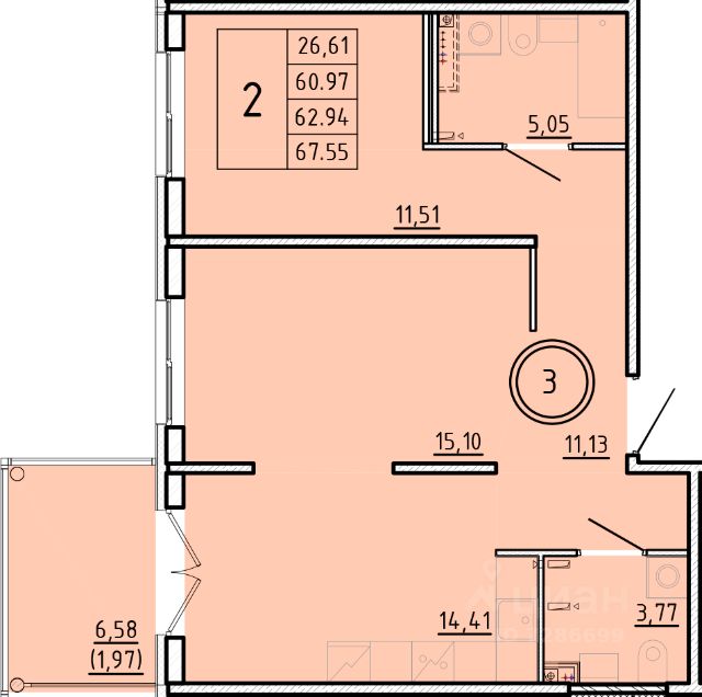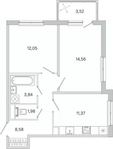 Просторная планировка: Изолированные комнаты (20,7 кв.м. и 12,4 кв.м) и кухня 7,6 кв.м позволяют комфортно разместиться семье или паре.