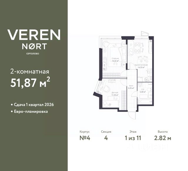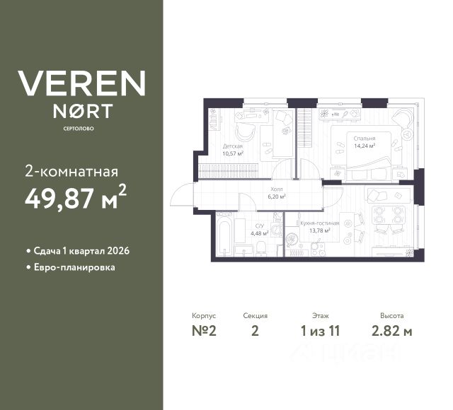 "Продается квартира площадью 56.05 кв. м без отделки. Квартира расположена на 1 этаже 8 этажного дома, в жилом комплексе комфорт-класса "Финский Квартал". "Финский квартал" - это уникальный проект комфорт-класса для тех, кто хотел бы жить на природе, но при этом находиться вблизи Северной столицы. Расположенный в окружении одного из самых крупных парков Ленобласти - Лахтинского, проект предлагает своим жителям доступную инфраструктуру, комплексное благоустройство территории, 6 секций переменной этажности с современной архитектурой, которая гармонично дополнит район и будет радовать проживающих еще много лет. Найдите свою идеальную квартиру в ЖК "Финский Квартал"! Расположение Пешком: - 5 мин. до детского сада и супермаркета; - 8 мин. до остановки "Зеленая улица"; - 10 мин. до лесопарковой зоны. На автомобиле: - 3 мин. до Приозерского шоссе; - 10 мин. до Выборгского шоссе; - 12 мин. до КАД; - 30 мин. до ст. метро "Проспект Просвещения". Благоустройство - большой яркий двор с ландшафтным дизайном; - живая изгородь, кустарники и хвойники; - умное зонирование тихих и активных площадок; - сквер для прогулок и отдыха; - изумрудные лужайки для пикников; - дорожки для пешеходов и велосипедистов; - большие игровые площадки; - мягкое покрытие для безопасности детей; - тренажеры, турники и веревочные комплексы; - пространство только для пешеходов - без машин; - наземная парковка за пределами двора; - специальные площадки для выгула питомцев; - светлые дизайнерские холлы; - светопрозрачное остекление и большие окна; - декоративная подсветка парадных; - колясочные помещения для комфорта родителей; - места для хранения велосипедов и самокатов. Окружение - свежий воздух: парк усадьбы "Осиновая Роща", Лахтинский парк, лесопарк "Курортный", Левашовский заказник, Ново-Кавголовский лесопарк; - водные объекты: Сестрорецкий Разлив, пляжи у Тохколодского и Большого озер, залив Сярюнлахти; - инфраструктура: 2 детских сада, школа, кафе, продуктовый супермаркет, больница; - для крупных покупок: ТРЦ "Китай-Город", "Мега-Парнас"", "Гранд Каньон"; - активный отдых: горнолыжные комплексы "Охта-Парк" и "Токсово", конный клуб "Осиновая Роща", ФОК "Норус"."