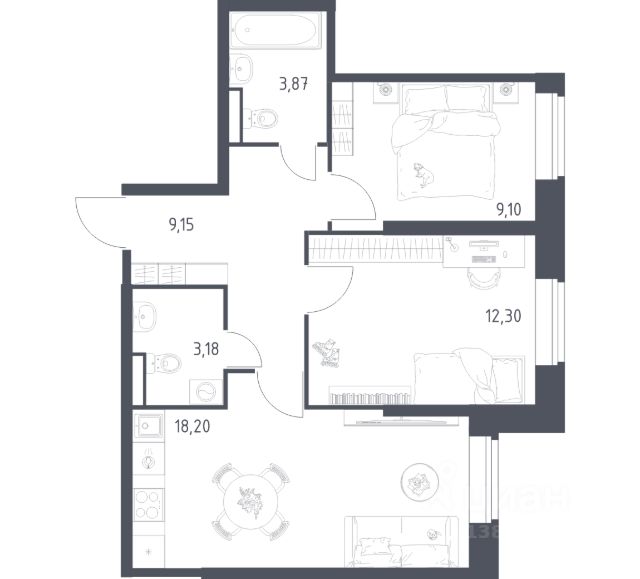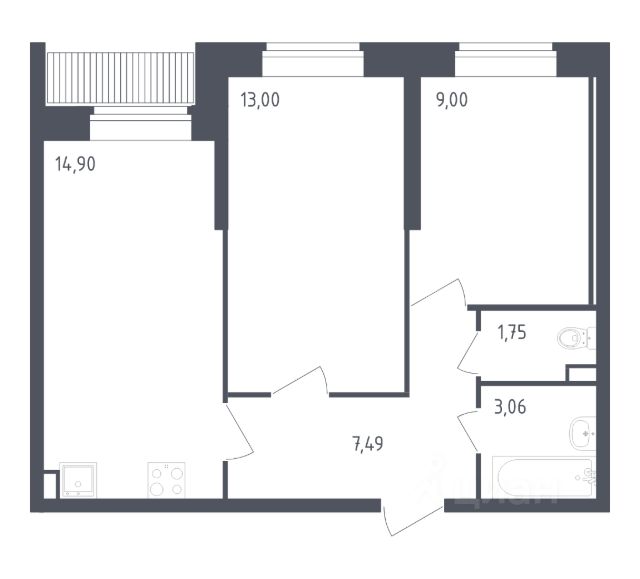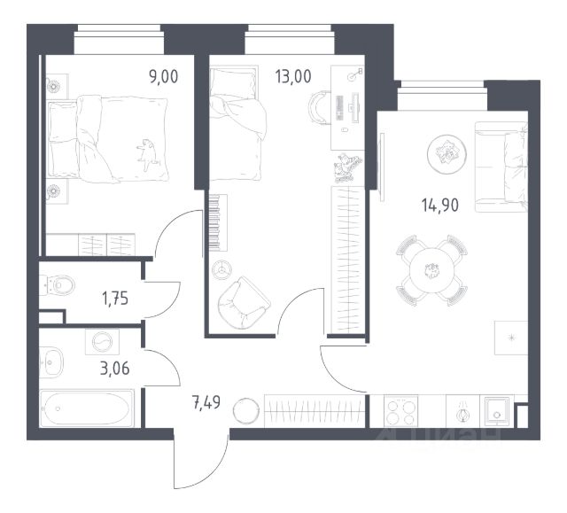 В продаже 2-комнатная квартира в корпусе 39 ЖК 'Живи! В Рыбацком'. Квартира располагается на 1 этаже, общая площадь 49.2 м2.