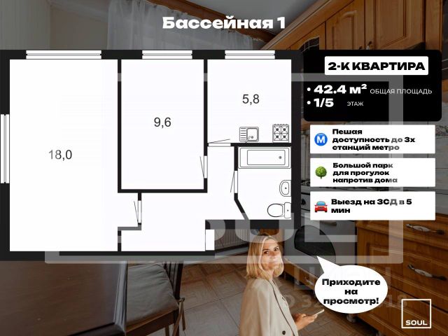 Кухня 6.3 кв.м. вмещает в себя всё необходимое, новому собственнику при желании в дар остаётся двухъярусный кухонный гарнитур (верхний ярус в упаковке в кладовой). Перепланировок нет, сделан свежий косметический ремонт, после которого никто не жил. На кухне, в прихожей и санузле на полу линолеум, на стенах в санузле пластиковые панели, во всех пространствах натяжные потолки, окна стеклопакеты. Текущее состояние квартиры позволяет как проживать сразу, с минимальными вложениями на обустройство, так и реализовать самые изысканные фантазии для собственных инженерных и дизайнерских решений. Квартира идеально подходит как для личного проживания, так и для инвестирования, благодаря пешей доступности до метро и большому количеству крупных точек притяжения поблизости.