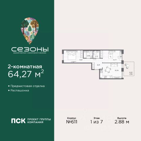 Продается 2 комнатная квартира 8 в ЖК ОКЛА от застpойщикa. "Окла" — жилой квартал комфорт-класса в Приморском районе Санкт-Петербурга. Расположен в окружении парков и озёр с развитой инфраструктурой. Первые корпуса уже сданы и заселены. Удобная локация: проект имеет отличную транспортную доступность с удобными выездами на КАД. До исторического центра Петербурга дорога займет 20 минут на автомобиле, а добраться до метро "Проспект Просвещения", "Озерки" и "Удельная" можно за 10 минут на транспорте. Природа у порога: комплекс расположен рядом с Новоорловским заказником и Суздальскими озерами. До входа в заказник 50 метров. Идеальное место для утренних пробежек и прогулок с семьей на свежем воздухе. Благоустройство: дворы-парки с авторским ландшафтным озеленением, сухим фонтаном, современным игровыми площадками для детей разных возрастов и зонами для занятий спортом. Школы, детские сады, а также привычная повседневная инфраструктура для комфортной жизни: магазины, кафе, салоны красоты, тренажерные залы и пункты выдачи популярных маркетплейсов. Архитектура: стильные фасады от известного архитектурного бюро, панорамное остекление с потрясающими видами на заказник, дизайнерские лобби и скоростные бесшумные лифты, дома 7-25 этажей с небольшим количеством соседей на этаже. Безопасность: территория квартала закрыта для посторонних и автомобилей. Доступ на территорию осуществляется по индивидуальным магнитным ключам. В квартале действуют современные системы видеонаблюдения. Паркинг: на территории предусмотрен многоуровневый паркинг, а так же гостевая парковка.