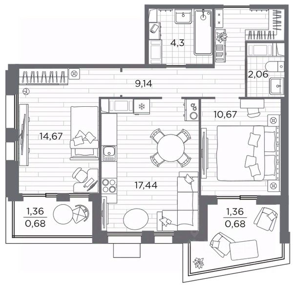 2-комн. квартира с отделкой в ЖК "RESPECT" на 10 этаже. Общая площадь: 59.25 кв.м., жилая: 25.34 кв.м., площадь просторной кухни-столовой: 17.44 кв.м. Квартира угловая, очень светлая, естественная вентиляция при открытии окон. В квартире две лоджии, один совмещенный и один раздельный санузел. Высота потолков 2.7 м. В ЖК Respect представлены два варианта чистовой отделки: светлая и тёмная. Потолки: натяжные или выравнивание с окраской, Окна: из ПВХ профиля с двухкамерным стеклопакетом, Остекление балконов и лоджий: алюминиевое однослойное, Полы: покрытие из ламината, полы санузлов: керамическая плитка или керамогранит, Стены: обои под окраску, стены санузлов: керамическая плитка или керамогранит. Установлены межкомнатные двери. Санузел: раковина с тумбой, ванна или душевая кабина, унитаз, смесители. Выполнена полная разводка электропроводки. Квартира находится в корпусе 6. Дом монолитный, одноподъездный, высотой 13 этажей. На этаже 8 квартир. В подъезде 1 пассажирский и 1 грузовой лифт. Окончание строительства - 4 квартал 2026 года. Оформление сделки по договору долевого участия. В шаговой доступности от жилого комплекса имеются станции метро (расстояние по прямой): "Лесная" (800 м), "Площадь Мужества" (1.4 км), "Выборгская" (1.9 км), также недалеко от этого корпуса находятся станции метро: "Академическая", "Политехническая". Квартал строится на Полюстровском пр, 87, в одной из самых востребованных локаций Петербурга. В 10 минутах пешком - метро "Лесная" и в 10 минутах на транспорте - Петроградская сторона. Высота домов от 7 до 13 этажей. На территории Respect строится школа на 1125 учащихся и детский сад на 240 мест. Запроектированы собственная газовая котельная, закрытая территория, дворы без машин и подземные паркинги с лифтами. Вентилируемые фасады облицованы клинкерным кирпичом. Дома из этого материала служат веками, являясь гордостью хозяев. Дизайн парадных зон и входных групп - сочетание лаконичности отделки и декоративных элементов с текстурами из натурального камня и дерева с приглушенной подсветкой теплым светом. Во входных группах расположены гостевые зоны с мягкой мебелью. Вся территория квартала будет связана единой концепцией благоустройства, разработанной ландшафтным бюро L.BURO. В основе - идея создания увлекательного ландшафтного пространства для насыщенной жизни, включающего в себя пейзажные зоны, современные архитектурные композиции, открытые террасы на стилобатах с зонами отдыха и парклетами, спортивными площадками. Это пространство для людей всех возрастов и различных увлечений. На эксплуатируемой кровле на уровне первого этажа в домах 1 и 4 будут обустроены общественные видовые террасы. В квартале запроектированы внутренние закрытые территории дворов домов без доступа автомобилей и безбарьерная среда для велосипедистов и колясок. Предусмотрены IP-домофония с функцией дистанционного открывания калиток и парадных, а также дистанционный сбор показаний счетчиков и мобильное приложение для жителей. Для
