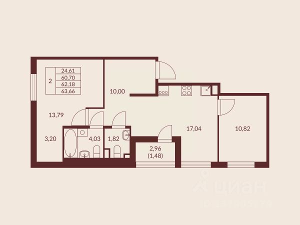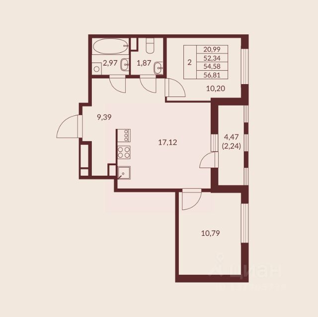 Вашему вниманию, уютная квартира 52,25 м² в Девяткино —шаговая доступность к метро и ж/д платформе, удобные выезды на КАД