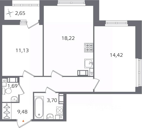 Стильная просторная двусторонняя евротрёшка с дизайнерским ремонтом у Сампсониевского сада
