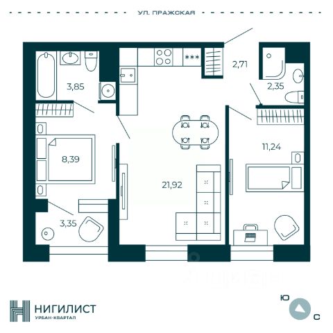 Продаётся 2-комнатная квартира в строящемся доме (Корпус 2), срок сдачи: I-кв. 2028, общей площадью 63.99 кв.м., на 10 этаже. Новый жилой дом от застройщика "СЗ БЛЭКСМИТ" расположен по адресу: Санкт-Петербург, Улица Фучика, д. 17, литера В.