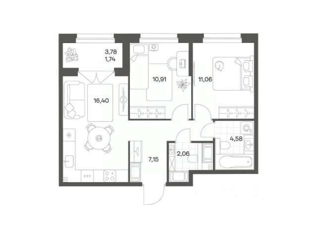 Продается уютная 2-комнатная квартира от застройщика в жилом комплексе "Город звезд" в новом городе на правом берегу Невы. До метро можно добраться на транспорте всего за 13 минут. Мастер-спальня с собственной ванной комнатой. Самое приватное пространство в вашей квартире. Уникальная, функциональная европланировка, большая кухня-гостиная 17.52 м², вместительная прихожая 7.51 м². Общая площадь квартиры - 58.05 м², жилая 26.11 м², высота потолка 2.77 м. Квартира продается с отделкой "NORD LINE SILVER". Что особенного в ЖК "Город звезд"? • Инновационный Лицей Setl с оригинальной архитектурной концепцией и уникальной образовательной средой • Невский лесопарк под окнами - всегда свежий воздух и полноценный отдых на природе • Четыре тематические площади отдыха с разнообразным благоустройством • Аллея Звёзд - променад протяженностью 5 км с ландшафтным озеленением, зонами отдыха и велодорожкой • Выход на набережную реки Утки, где можно порыбачить или взять напрокат лодку • Единая входная группа с ресепшен и подземный паркинг