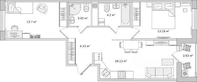 Строим кварталы для жизни с заботой о будущем. Предлагается 2-комнатная квартира комфорт-класса 59,23 кв.м в корпусе 35.2 на 10 этаже, в ЖК "Новое Колпино" Квартира без отделки. Доступность опции "отделка" и возможность комплектации мебелью и декором уточняйте у застройщика. Приобрести квартиру возможно по специальным акциям от застройщика, с текущими условиями акций можно ознакомиться в блоке "Акций". Цена динамическая и может отличаться, уточняйте актуальность у застройщика. Квартал "Новое Колпино" — современный квартал в тихом и зеленом районе Санкт-Петербурга. Здесь можно подолгу любоваться пышными кронами деревьев, подставляя лицо теплым лучам солнца. А еще в любой момент можно сесть в машину и уже через час оказаться в сердце Северной столицы. Будет легко планировать поездки: до центра Петербурга, или площади Восстания, — 25 минут на поезде. С территории квартала удобно выезжать на крупные магистрали: путь до Южного шоссе займет 15 минут на авто, а до Петрозаводского шоссе — всего 6 минут. В 20 минутах на авто находится метро "Рыбацкое", а в 7 минутах — ж/д станция Колпино. Проводите выходные на природе в Колпинском парке, который находится недалеко от квартала, на берегу реки Ижоры. Летом здесь можно вместе с детьми веселиться на аттракционах, кататься на лодке, играть в бадминтон или волейбол. А еще можно захватить орехов и покормить белок. Всего 7 минут на авто или автобусе — и вы в центре города Колпино. Взрослых впечатлит русская архитектура старинных церквей, а детям понравится забавный памятник героям мультфильма "Трое из Простоквашино". В "Новом Колпино" будут работать 4 детских сада, 3 из них уже готовы встречать малышей. Ребята постарше могут ходить на занятия в школу с собственным бассейном, в проекте уже работает новая современная школа с бассейном Корпуса высотой 11 этажей с французскими и панорамными балконами отделаны штукатуркой и облицовочным кирпичом. Вдохновение для палитры нам подарили оттенки рассветного неба: терракотовый, персиковый, песочный. Во дворе найдется интересное занятие для всех жителей квартала. Взрослые смогут устраивать тренировки на свежем воздухе в спортивных зонах, дети будут целый день веселиться на игровых площадках. А еще мы позаботились о вашей безопасности и закрыли дворы от машин. Возвращайтесь домой с чемоданом из путешествия или коляской из парка. На пути в подъезд вы не встретите ступенек. Оставить транспорт можно будет в специальном помещении на первом этаже. По желанию вы сможете получить ключи от квартиры с готовой отделкой. Мы положим ламинат, поклеим обои, установим мебель и сантехнику. Доступен вариант с готовой кухней — бежевые тона отделки станут фоном для интерьера мечты. Чтобы сразу отпраздновать новоселье, закажите у нас декор и мебельные сеты. А если хочется воплотить собственные идеи в интерьере, присмотритесь к опции — без отделки.