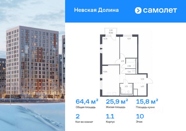 Продается уютная 2-комнатная квартира от застройщика в жилом комплексе "Город звезд" в новом городе на правом берегу Невы. До метро можно добраться на транспорте всего за 13 минут. Мастер-спальня с собственной ванной комнатой. Самое приватное пространство в вашей квартире. Уникальная, функциональная европланировка, большая кухня-гостиная 17.52 м², вместительная прихожая 7.51 м². Общая площадь квартиры - 58.05 м², жилая 26.11 м², высота потолка 2.77 м. Квартира продается с отделкой "NORD LINE SILVER". Что особенного в ЖК "Город звезд"? • Инновационный Лицей Setl с оригинальной архитектурной концепцией и уникальной образовательной средой • Невский лесопарк под окнами - всегда свежий воздух и полноценный отдых на природе • Четыре тематические площади отдыха с разнообразным благоустройством • Аллея Звёзд - променад протяженностью 5 км с ландшафтным озеленением, зонами отдыха и велодорожкой • Выход на набережную реки Утки, где можно порыбачить или взять напрокат лодку • Единая входная группа с ресепшен и подземный паркинг