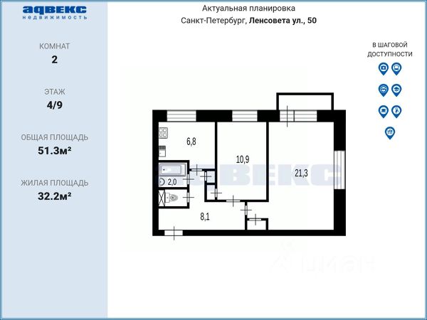 • ✓ В базе Циан 3 2-комнатных квартир на 10 этаже в округе Гагаринское в Санкт-Петербурге