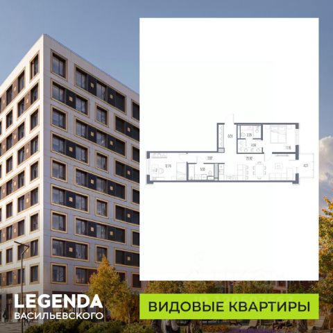 Двухкомнатная квартира от застройщика с предчистовой отделкой в ЖК "LEGENDA Васильевского" на 10 этаже. Общая площадь: 61.96 кв.м., жилая: 20.17 кв.м., площадь просторной кухни-столовой: 21.67 кв.м. Угловая квартира, идеально подойдет любителям тишины и панорамных видов. В квартире два совмещенных санузла. Высота потолков 2.7 м. "LEGENDA Васильевского" жилой квартал в минутной доступности от Финского залива, главного креативного хаба Санкт-Петербурга Севкабель Порта и других точек притяжения. Современные инженерные и технические решения, повышающие качество жизни TechnoBox включают в себя: стационарный и удаленный контроль дома, систему вентиляции Air Design - здоровое дыхание без лишнего шума, мультисервисную сеть, объединяющую коммуникационные системы, удаленное управление электроприборами, контроль отопления в каждом помещении, поддерживающий оптимальный температурный баланс во время "холодного" периода", датчики протечки, датчик открытия входной двери. Мультисервисная сеть (МСС) объединяет ключевые слаботочные системы дома, задавая им единый высокий стандарт работы, обеспечивая надёжность их функционирования и управления. Квартира готова к декорированию. Застройщиком сделана шумоизоляция; стены подготовлены для отделки; проведена электрика с учетом рекомендаций по расстановке мебели и бытовой техники; выровнен пол. В каждой квартире установлена взломостойкая входная дверь, окна со специальным термоизолированным алюминиевым профилем. Двор жилого комплекса "LEGENDA Васильевского" закрыт. Проект состоит из шести разноформатных корпусов с ритмичными фасадами в духе пост-конструктивизма. Геометрия жилого комплекса состоит из четко простроенных осей, чередующих открытые пространства и объемы корпусов, каждый из которых обладает своим визуальным кодом индивидуальным рисунком фасада и цветовой палитрой. Корпуса образуют периметр с общественными пространствами: площадью с кафе, магазинами и пешеходным променадом с детскими игровыми хабами, местами для спокойного отдыха и workout-зоной. Срок сдачи 4 квартал 2027 года. На территории комплекса предусмотрены теплый подземный паркинг и два наземных 4-х этажных паркинга.