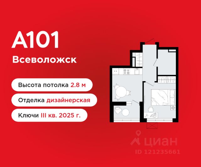 Видовая 2-комнатная квартира площадью 38.00 в ЖК "А101 Всеволожск" c лоджией на 11 этаже. Квартира с отделкой. Вид из окна во двор. В квартире 1 санузел. Высота потолков 2.8 м. Особенность планировки - гардеробная. ОТДЕЛКА Для квартир с чистовой отделкой предлагается три варианта дизайна: Классика, Карелия светлая и Карелия темная. Варианты всех дизайнерских решений представлены на фотографиях. Подробности можно уточнить у менеджера. На все отделочные работы от застройщика предоставляется гарантия. ОСОБЕННОСТИ ПЛАНИРОВКИ Места для хранения находятся в прихожей и жилой зоне квартиры, дополнительно можно получить доступ к кладовым на подземном уровне (площадь - 2-8 кв. м). ПАРАДНАЯ Мягкая мебель, живые растения и натуральные материалы в отделке формируют современный и уютный интерьер входной группы, радующий глаз и создающий приятную атмосферу для встреч с гостями. Для вашего удобства реализован безбарьерный вход, отвечающий требованиям доступной среды для всех жильцов, а также в каждой парадной имеется отдельное помещение для хранения колясок и велосипедов. ДВОРЫ И ОКРУЖЕНИЕ Большая часть территории комплекса отведена под зелёные благоустроенные зоны: теневые сады, уютные городские пространства с развитой тротуарной сетью и велодорожками - всё для вашего активного и здорового образа жизни. Внутренние дворы закрыты от посторонних и свободны от автомобилей. Каждый дом оснащён высокотехнологичными системами видеонаблюдения и контроля доступа, обеспечивая максимум безопасности и спокойствия для вас и ваших близких. Окружение района - живописный природный ландшафт. Всего в 5 минутах ходьбы располагается Ковалёвский лесопарк - источник кислорода, пространство для спорта, отдыха и приятных прогулок на свежем воздухе. ИНФРАСТРУКТУРА В жилой застройке сохранена естественная среда благодаря разнообразию растительности, извилистым дорожкам и уличной мебели из натуральных материалов. Здесь находится насыщенная сеть экотроп протяжённостью более 10 км прямо у дома, а просторная площадь позволяет жителям приятно провести время, общаться с соседями и отдыхать. Также предусмотрены зоны для отдыха и специально оборудованные спортивные площадки для активного образа жизни на свежем воздухе. Всё самое необходимое - рядом с вашим домом. Выпить утром кофе в уютном кафе или поужинать с друзьями, отвести детей на развивающие занятия или игровую площадку, купить продукты и товары первой необходимости. В проекте запланировано уникальное гастрономическое пространство, располагающееся на основном пешеходном бульваре жилого района. Территория дополнительно оборудована местами отдыха на свежем воздухе, а для ресторанов и кафе будет предусмотрена возможность организации летних веранд. ЗАСТРОЙЩИК ГК "А101" - один из крупнейших застройщиков России. Каждая восьмая квартира, проданная в Москве, находится в районе, построенном компанией, что подчеркивает её значимость и успех на рынке недвижимости.