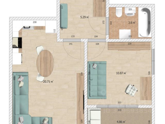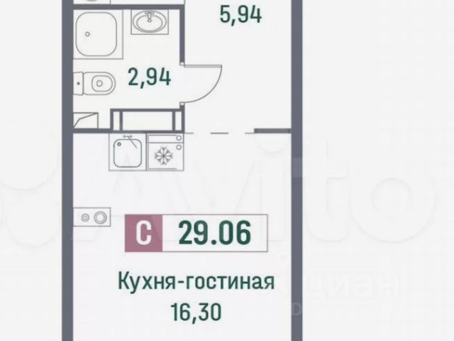 Продается квартира 378, по адресу Ленинградская область, Всеволожский муниципальный район, Муринское городское поселение,город Мурино, корпус Ягодное Река Парк, 1 очередь, участок 1.10, корпус 1 в Ягодное Река Парк на 11 этаже, с площадью 59 м2.