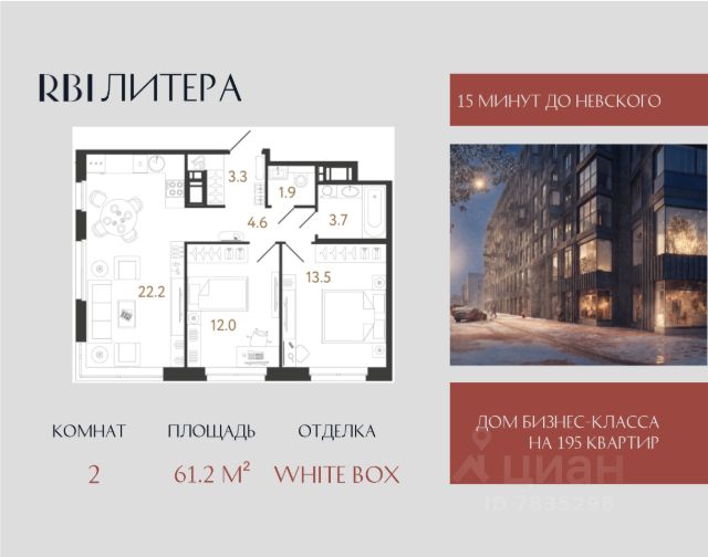 Арт. 127339711 В Продаже 2 -комнатная квартира в ЖК "Дом у Речного вокзала"!