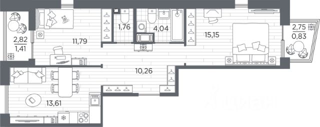 - Две изолированные спальни, просторная гостиная, изолированная кухня.