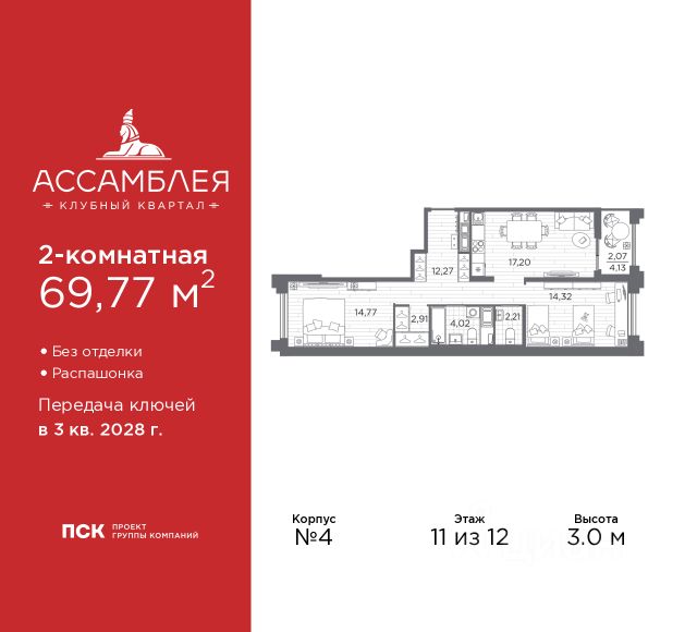 Продаётся 2-комн. квартира площадью 56,7 кв.м на 11 этаже 12 этажного дома (Корпус 2, Секция 1) проекта ПИК Шкиперский 19. Светлый просторный подъезд на уровне земли, функциональная планировка, большие окна, без отделки. Жилой квартал возводится на Васильевском острове, в пешей доступности от станции метро "Приморская" и с удобным выездом на ЗСД. Здесь будут квартиры с высокими потолками, окнами в пол и великолепным видом на Финский залив. Жилой квартал "Шкиперский 19" возводится в историческом районе Санкт-Петербурга - на Васильевском острове. Здания высотой от 8 до 12 этажей выполнены в природных оттенках, поэтому гармонично вписываются в архитектурный ландшафт Васильевского острова. На первых этажах домов откроются магазины, кафе и полезные сервисы: чтобы сходить за свежей выпечкой к завтраку, можно будет просто спуститься на лифте. Для детей из "Шкиперского 19" на территории квартала откроются школа и детский сад. Парадный вход "Шкиперского 19" - просторное и светлое гранд-лобби в стиле джапанди. В нём будут сочетаться элементы японских и скандинавских традиций дизайна. Помимо зоны ожидания с мягкой мебелью, здесь будет детская комната и гостевой санузел. В парадных предусмотрены комнаты для колясок и лапомойки для собак, тихие и быстрые лифты. Автомобиль можно будет оставить в подземном паркинге, а крупные и сезонные вещи - в индивидуальной кладовой. Доехать от квартала до Невского проспекта можно за 15 минут, до ЗСД - за 12 минут. В 20 минутах ходьбы находится станция метро "Приморская", и в 2030 году планируется открытие станции "Гавань" в 5 минутах от проекта. Проект принадлежит "Серии плюс". В "Серию плюс" входят жилые кварталы с повышенным уровнем комфорта и уникальной архитектурой. В светлых уютных лобби с дизайнерской отделкой предусмотрены колясочная и гостевой санузел. Артикул 977062 (Застройщик ООО "СЗ "Москворецкий дом") [cn_sbp_1705539]
