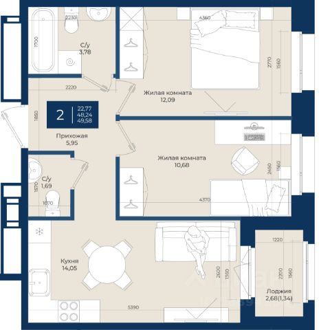 • ✓ Ищете объявления о продаже 2-комнатных квартир рядом с метро Проспект Ветеранов?