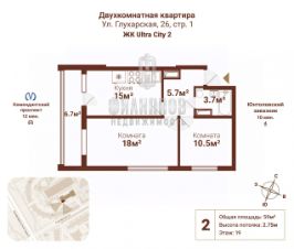 В прямой продаже светлая, просторная двухкомнатная квартира, по адресу: Санкт-Петербург, Приморский район, Комендантский пр., дом 13, корпус 1. Квартира расположена на 24 этаже 25-ти этажного кирпичного дома.