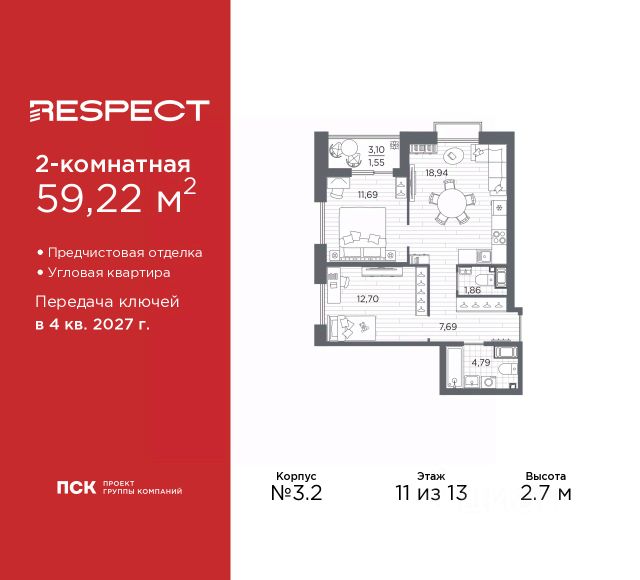 Продается двухкомнатная квартира с предчистовой отделкой в ЖК "RESPECT" на 11 этаже. Общая площадь: 65.84 кв.м., жилая: 28.86 кв.м., площадь просторной кухни-столовой: 18.57 кв.м. Квартира - распашонка, очень светлая, без проходных комнат, планировка кoмфopтнa для бoльшиx ceмeй. В квартире один балкон и одна лоджия, один совмещенный и один раздельный санузел. Высота потолков 2.7 м. Дом монолитный, многоподъездный, переменной этажности, от 10 до 13 этажей. Квартира находится в 1-й секции высотой 13 этажей в корпусе 3.2. На этаже 5 квартир. В подъезде 1 пассажирский и 1 грузовой лифт. Начало строительства - 3 квартал 2025 года. Окончание строительства - 4 квартал 2027 года. Оформление сделки по договору долевого участия. В шаговой доступности от жилого комплекса находятся станции метро (расстояние по прямой): "Лесная" (800 м), "Площадь Мужества" (1.4 км), "Выборгская" (1.9 км), также недалеко от этого корпуса расположены станции метро: "Академическая", "Политехническая". Квартал строится на Полюстровском пр, 87, в одной из самых востребованных локаций Петербурга. В 10 минутах пешком - метро "Лесная" и в 10 минутах на транспорте - Петроградская сторона. Высота домов от 7 до 13 этажей. На территории Respect строится школа на 1125 учащихся и детский сад на 240 мест. Запроектированы собственная газовая котельная, закрытая территория, дворы без машин и подземные паркинги с лифтами. Вентилируемые фасады облицованы клинкерным кирпичом. Дома из этого материала служат веками, являясь гордостью хозяев. Дизайн парадных зон и входных групп - сочетание лаконичности отделки и декоративных элементов с текстурами из натурального камня и дерева с приглушенной подсветкой теплым светом. Во входных группах расположены гостевые зоны с мягкой мебелью. Вся территория квартала будет связана единой концепцией благоустройства, разработанной ландшафтным бюро L.BURO. В основе - идея создания увлекательного ландшафтного пространства для насыщенной жизни, включающего в себя пейзажные зоны, современные архитектурные композиции, открытые террасы на стилобатах с зонами отдыха и парклетами, спортивными площадками. Это пространство для людей всех возрастов и различных увлечений. На эксплуатируемой кровле на уровне первого этажа в домах 1 и 4 будут обустроены общественные видовые террасы. В квартале запроектированы внутренние закрытые территории дворов домов без доступа автомобилей и безбарьерная среда для велосипедистов и колясок. Предусмотрены IP-домофония с функцией дистанционного открывания калиток и парадных, а также дистанционный сбор показаний счетчиков и мобильное приложение для жителей. Для безопасности жителей квартала - круглосуточное видеонаблюдение и служба охраны. В каждой квартире предусмотрены внешние корзины для кондиционеров. #Z6BBb3