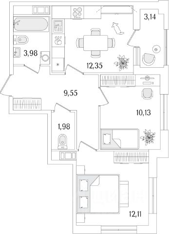 Продаётся 2-комн. квартира площадью 55,9 кв.м на 11 этаже 12 этажного дома (Корпус 6, Секция 4) проекта ПИК Витебский парк. Светлый просторный подъезд на уровне земли, функциональная планировка, большие окна, c отделкой. Жилой квартал "Витебский парк" находится во Фрунзенском районе Санкт-Петербурга, в 15 минутах пешком от метро "Обводный канал". А в 2027 году всего в паре минут от проекта планируют открыть станцию метро "Боровая". В квартал входят 3 детских сада, школа и 7 жилых домов с дворами-парками, куда не могут зайти посторонние люди и заехать автомобили. Школа на 1250 мест и детский сад на 350 мест откроются одновременно с заселением первой очереди, это значит, что жители проекта смогут отдать своих детей в новые образовательные учреждения на территории квартала. Во дворах приятно отдыхать, знакомиться с соседями и даже заниматься йогой, а для детей мы построим детские площадки. Рядом появятся современные спортивные площадки. На первых этажах домов откроются магазины, кафе и другие сервисы. Через весь жилой район протянется широкий пешеходный бульвар для прогулок и спорта. Рядом с "Витебским парком" есть всё для комфортной жизни: магазины, торговые центры, фитнес-клубы, кафе и рестораны, а ещё детские сады, школы, вузы и поликлиника. Артикул 1005623 (Застройщик ООО "СЗ "Лиговский Сити") [cn_sbp_1791469]