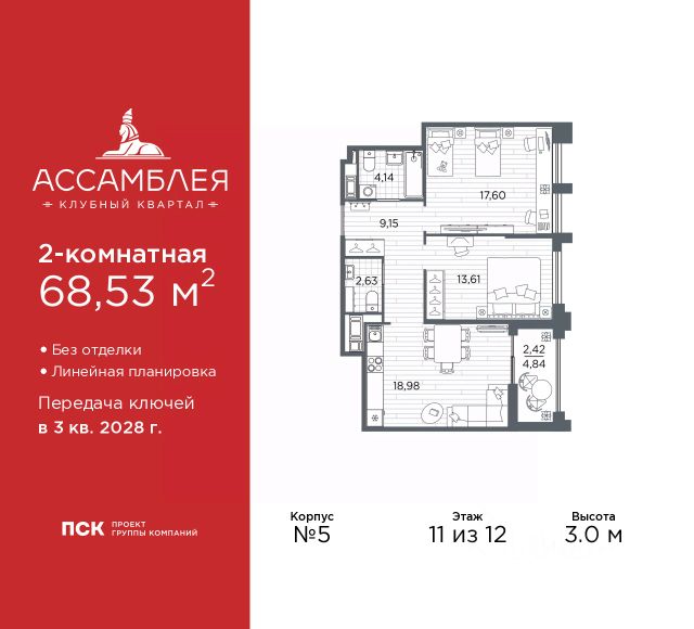 Продается 2-комн. квартира от застройщика с предчистовой отделкой в ЖК "Новая Земля" на 11 этаже. Общая площадь: 56.91 кв.м., жилая: 21.29 кв.м., площадь просторной кухни-столовой: 21.4 кв.м. Угловая квартира, окна oбecпeчивaют paвнoмepнoe ocвeщeниe в тeчeниe дня. В квартире один балкон, один совмещенный и один раздельный санузел. Наличие террасы в квартире открывает возможность для обустройства дополнительной площади. Высота потолков 2.85 м. Квартира находится в корпусе 1.5. Дом монолитный, одноподъездный, высотой 17 этажей. На этаже 12 квартир. В подъезде 1 пассажирский и 1 грузовой лифт. Окончание строительства - 4 квартал 2028 года. Оформление сделки по договору долевого участия. Новая Земля — проект LEGENDA в локации морской набережной Васильевского острова, где уже сегодня формируется многообещающее и перспективное место для жизни и инвестиций. Проект состоит из двух очередей, расположенных в непосредственной близости, но имеющих идеологически разный подход к проектированию и ассортиментному предложению. Первая очередь, где квартиры уже в продаже, наполнена компактными функциональными и эстетичными сьютами в комплектации TechnoBox, подходящими для активной аудитории, предпочитающей больше времени проводить в городе. Транспортная доступность обеспечена благодаря близости выезда на ЗСД, который позволяет быстро добраться как до центра города, так и до других районов Санкт-Петербурга. Архитектурная концепция проекта задает новый стандарт для этой локации. Дизайн фасадов, большие окна без импостов, современные инженерные решения — всё это создаёт атмосферу комфортного и эстетичного пространства, отвечающего самым высоким требованиям. В проекте представлена новая линейка планировочных решений, созданных по принципам отельного проектирования. Сьюты от LEGENDA — это уникальная работа с пространством, сочетающая сверхфункциональность и удобство, чистоту линий и стилистический минимализм. Планировочные решения в рамках первой очереди проекта будут поделены на несколько сегментов, отличающихся размерами, функциональной наполненностью и отвечающих потребностям различных жителей проекта.