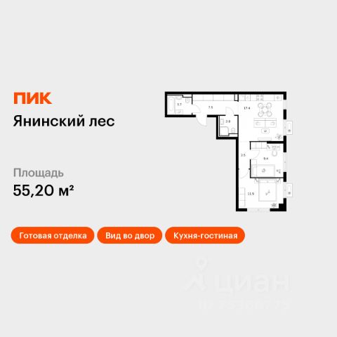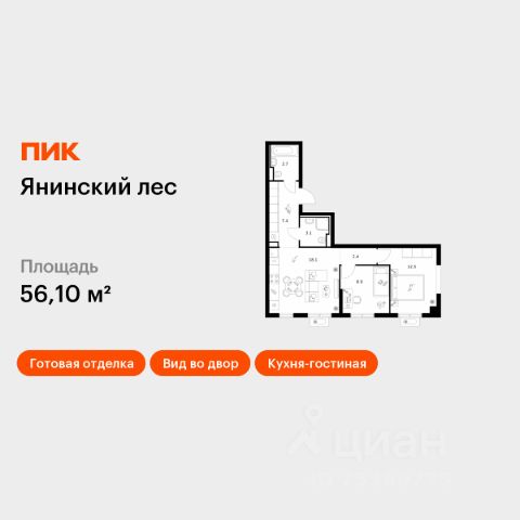 Продаётся 2-комн. квартира площадью 50,6 кв.м на 12 этаже 15 этажного дома (Корпус 1, Секция 1) проекта ПИК Янинский лес. Светлый просторный подъезд на уровне земли, функциональная планировка, большие окна, c отделкой. Жилой квартал "Янинский лес" возводится в районе Янино-1 Ленинградской области. Автобусная остановка находится в 3 минутах пешком. Проект расположен вплотную к восточной границе Санкт-Петербурга - в 4 минутах от КАД. До метро "Ладожская" - 23 минуты на общественном транспорте. До исторического центра города можно доехать за 25 минут на автомобиле. "Янинский лес" - масштабный проект из 32 жилых корпусов, где будет всё для комфортной жизни. Здесь предусмотрены надземные паркинги, откроются детские сады, школа и поликлиника. Кроме этого, появятся места, в которых можно проводить свободное время: ледовая арена и торговый центр площадью больше 3000 м². Жилой район строится по всем правилам ПИК-Стандарта: в зелёных дворах-парках появятся современные детские и спортивные площадки, пешеходный бульвар и другие места для отдыха. На первых этажах разместятся магазины, кафе и другие сервисы. Во дворах не будет автомобилей, а для гостей предусмотрены парковочные места. Проект окружают лесные массивы. В пешей доступности находится Ржевский лесопарк: летом там можно гулять и собирать грибы, а зимой кататься на лыжах. Также рядом расположен памятник природы Колтушские высоты - парк с обустроенными экотропами и веломаршрутом. А главное место притяжения местных жителей - озеро с обустроенным местом для пикников. Артикул 1048758 (Застройщик ООО "СПЕЦИАЛИЗИРОВАННЫЙ ЗАСТРОЙЩИК"ЭКСТРАГРАД") [cn_sbp_1828234]