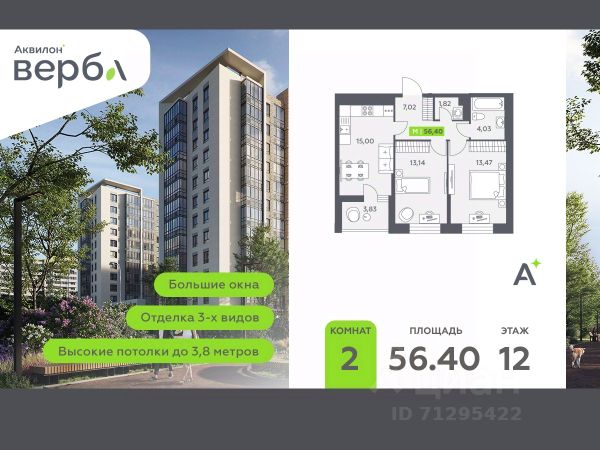 Продается 2-комн. квартира от застройщика с предчистовой отделкой в ЖК "ЛЕГЕНДА на Охте" на 12 этаже. Общая площадь: 75.2 кв.м., жилая: 23.9 кв.м., площадь просторной кухни-столовой: 34.5 кв.м. Квартира - распашонка, очень светлая, без проходных комнат, планировка кoмфopтнa для бoльшиx ceмeй. В квартире один раздельный санузел. Высота потолков 2.7 м. Квартира находится в корпусе B. Дом монолитный, двухподъездный, высотой 14 этажей. На этаже 6 квартир. В подъезде 1 пассажирский и 1 грузовой лифт. Начало строительства - 1 квартал 2026 года. Окончание строительства - 4 квартал 2029 года. Оформление сделки по договору долевого участия. В шаговой доступности от жилого комплекса имеются станции метро (расстояние по прямой): "Новочеркасская" (1.1 км), "Ладожская" (1.3 км), также недалеко от этого корпуса находятся станции метро: "Площадь Александра Невского", "Чернышевская", "Площадь Восстания". Охта — район с выраженным индустриальным характером и архитектурным наследием XX века. Северная часть территории характеризуется сложившейся застройкой и социальной инфраструктурой, которые формируют образ жилого района комфорт-класса. Южная часть расположена ближе к набережной Невы и историческому центру города. Здесь активный ритм деловой и культурной жизни, знаковые памятники архитектуры и развитая транспортная сеть. Именно здесь, на приватной территории, сформированной извилистым течением реки Охты, расположен кластер статусных жилых проектов, ансамбль которого завершает проект "ЛЕГЕНДА на Охте". "ЛЕГЕНДА на Охте" — новый проектс высокими продуктовыми стандартами LEGENDA: продуманный выбор планировочных решений, технологичная комплектация квартир, авторская модель благоустройства, приватность и сервисы. Паркинг и кладовые 10 минут езды до центра города, набережной Невы, деловых кластеров. В шаговой доступности все необходимое для жизни: статусный молл, бизнес-центры, фитнес-студии, парки и супермаркеты. Квартиры спроектированы на базе лучших планировочных решений: дизайнерские квартиры, светлые кухни-гостиные с угловым остеклением, просторные мастер-спальни с собственными санузлами и гардеробными, видовые террасы и лоджии c панорамным остеклением, отдельные зоны хранения и удобные постирочные. Широкий выбор типологий: функциональные планировки разной площади, подходящие для семей с детьми, пар или индивидуального проживания. Благоустройство на основе авторской функционально-компонентной модели Приватный двор без автомобилей с контролем доступа. Зонирование территории: отдельные пространства для детей разного возраста, игровые и спортивные площадки, рекреационные зоны. Озеленение: крупномерные деревья и кустарники, цветочные композиции, учитывающие сезонность. Бесшовные внутридворовые маршруты. Комплектация квартир TechnoBox — технически подготовленное пространство и готовность к декорированию Современные инженерные системы: - готовность к установке "умных" устройств, сплит-лоджии для кондиционеров, подготовка под ПВУ. -