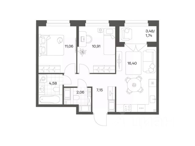 Продается уютная 2-комнатная квартира от застройщика в жилом комплексе "Город звезд" в новом городе на правом берегу Невы. До метро можно добраться на транспорте всего за 13 минут. Удобная, классическая, функциональная европланировка, большая кухня-гостиная 17 м², просторная прихожая 8.56 м². Общая площадь квартиры - 54.85 м², жилая 23.24 м², высота потолка 2.77 м. Квартира продается с отделкой "NORD LINE SILVER". Что особенного в ЖК "Город звезд"? • Инновационный Лицей Setl с оригинальной архитектурной концепцией и уникальной образовательной средой • Невский лесопарк под окнами - всегда свежий воздух и полноценный отдых на природе • Четыре тематические площади отдыха с разнообразным благоустройством • Аллея Звёзд - променад протяженностью 5 км с ландшафтным озеленением, зонами отдыха и велодорожкой • Выход на набережную реки Утки, где можно порыбачить или взять напрокат лодку • Единая входная группа с ресепшен и подземный паркинг