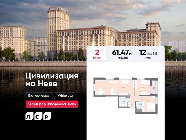 Продаётся 2-комнатная квартира в ЖК "Цивилизация на Неве" на 12 этаже. Общая площадь составляет 60.32 кв. м. Квартира с white box отделкой. Жилой комплекс "Цивилизация на Неве" располагается по адресу Санкт-Петербург, Невский. "Цивилизация на Неве" - видовые дома бизнес-класса, расположенные вдоль набережной Невы, всего в 7 км от исторического центра. Жилой комплекс идеально выражает особый дух, свойственный знаменитым просторным кварталам постройки сталинской эпохи в Москве и на Московском проспекте в Петербурге. Расположение: • 15 мин на авто до Невского проспекта; • 15 мин на авто до Московского вокзала; • 5 мин на авто до станции метро "Улица Дыбенко"; • 14 мин (7 км) до КАД. Уникальный дизайн входных зон, закрытая территория, видеонаблюдение и охрана, подземный паркинг с лифтом и другие особенности проекта отвечают заявленному классу. В каждом дворе предусмотрено озеленение по индивидуальному ландшафтному проекту с благородными растениями и кустарниками. Преимущества: • Закрытая территория с видеонаблюдением; • Подземный паркинг с лифтом; • Детская площадка на приватной безопасной территории; • Несколько детских садов и школ; • Инфраструктура шаговой доступности на первых этажах корпусов. Успейте приобрести квартиру на выгодных условиях! Чтобы узнать подробности, обращайтесь за консультацией по телефону.