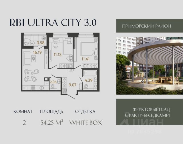 Продается уютная 2-комнатная квартира от застройщика в жилом комплексе "Бионика Заповедная" в динамичном Приморском районе. До метро можно добраться на транспорте всего за 11 минут. Мастер-спальня с собственной ванной комнатой. Самое приватное пространство в вашей квартире. Уникальная, функциональная европланировка, большая кухня-гостиная 16.3 м², вместительная прихожая 7.42 м². Общая площадь квартиры - 55.62 м², жилая 24.96 м², высота потолка 3 м. Квартира продается с отделкой "Норд Лайн светлый плюс". Что особенного в ЖК "Бионика Заповедная"? • Оазис в городе 3 минуты пешком до Новоорловского заказника (140 ГА) • Захватывающие виды из окон на хвойный лесопарк • Всесезонный "Заповедный парк" во дворе площадью 23000 кв.м. • 5 единых входных групп с авторским дизайном и лаундж-зонами, сити-виллы на первых этажах с палисадниками и высотой потолков до 4 м • Места притяжения: фонтан "Бионика", спортивный кластер со скейт-парком, фотозоны с арт-объектами