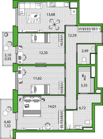 Квартира имеет функциональную планировку, которая позволяет эффективно использовать все жилое пространство: большую кухню 12,2 кв.м., с выходом на застекленную лоджию, две просторные изолированные комнаты, удобную прихожую со шкафом-купе и гардеробной с встроенной системой хранения вещей (не отмечена на плане), раздельный санузел. Из окон открывается красивый вид на город, а благодаря высокому этажу - светло, нет пыли и шума. Высота потолка 2,76 метра, благодаря чему в квартире очень комфортно и создается ощущение простора. Дом имеет благоустроенный двор с детской площадкой, два просторных лифта.