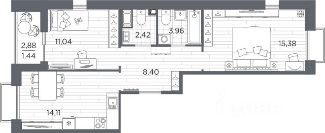 Продаётся 2-комнатная квартира в строящемся доме (Дом 3), срок сдачи: IV-кв. 2027, общей площадью 58.42 кв.м., на 12 этаже. Жилой квартал Respect - современная респектабельность. Квартал строится на Полюстровском проспекте, в одной из самых востребованных локаций Петербурга. В 10 минутах пешком - метро "Лесная" и в 10 минутах на транспорте - Петроградская сторона. Высота домов от 7 до 13 этажей. Квартиры сдаются с отделкой white box и с чистовой отделкой. На территории Respect строится школа на 1125 учащихся и детский сад на 240 мест. Запроектированы собственная газовая котельная, закрытая территория, дворы без машин и подземные паркинги с лифтами.