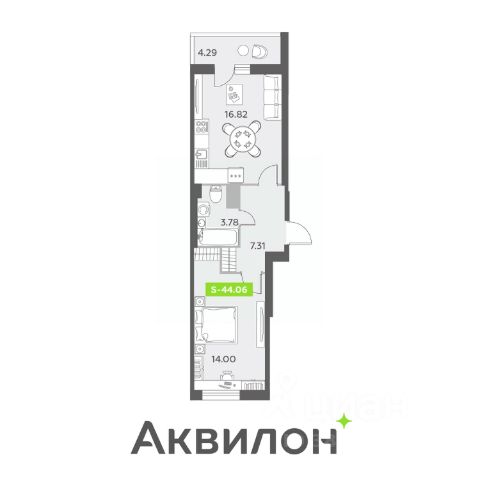 Квартира без отделки, что дает возможность реализовать свои дизайнерские фантазии и создать интерьер на свой вкус.