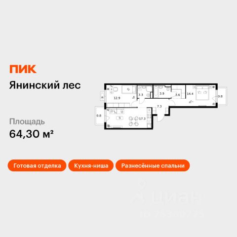 Продаётся 2-комн. квартира площадью 65,7 кв.м на 13 этаже 15 этажного дома (Корпус 2, Секция 2) проекта ПИК Янинский лес. Светлый просторный подъезд на уровне земли, функциональная планировка, большие окна, c отделкой. Жилой квартал "Янинский лес" возводится в районе Янино-1 Ленинградской области. Автобусная остановка находится в 3 минутах пешком. Проект расположен вплотную к восточной границе Санкт-Петербурга - в 4 минутах от КАД. До метро "Ладожская" - 23 минуты на общественном транспорте. До исторического центра города можно доехать за 25 минут на автомобиле. "Янинский лес" - масштабный проект из 32 жилых корпусов, где будет всё для комфортной жизни. Здесь предусмотрены надземные паркинги, откроются детские сады, школа и поликлиника. Кроме этого, появятся места, в которых можно проводить свободное время: ледовая арена и торговый центр площадью больше 3000 м². Жилой район строится по всем правилам ПИК-Стандарта: в зелёных дворах-парках появятся современные детские и спортивные площадки, пешеходный бульвар и другие места для отдыха. На первых этажах разместятся магазины, кафе и другие сервисы. Во дворах не будет автомобилей, а для гостей предусмотрены парковочные места. Проект окружают лесные массивы. В пешей доступности находится Ржевский лесопарк: летом там можно гулять и собирать грибы, а зимой кататься на лыжах. Также рядом расположен памятник природы Колтушские высоты - парк с обустроенными экотропами и веломаршрутом. А главное место притяжения местных жителей - озеро с обустроенным местом для пикников. Артикул 1049253 (Застройщик ООО "СПЕЦИАЛИЗИРОВАННЫЙ ЗАСТРОЙЩИК"ЭКСТРАГРАД") [cn_sbp_1861104] Продается 2-комнатная квартира на 13 этаже в Ленинградской области.