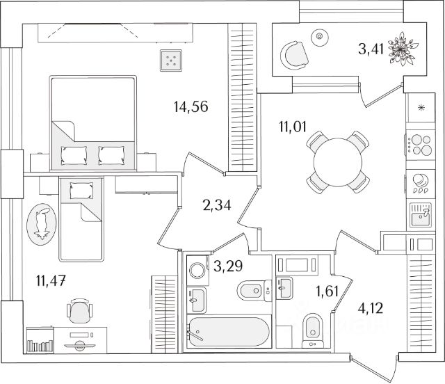 Инфраструктура в 5-10 мин пешком: садик, школа, ТЦ "Северный Молл", поликлиника, стадион, банки, супермаркеты. До метро "Черная Речка" и Лесная - 15 мин пешком или 5 мин на транспорте, рядом парки, набережная большой Невки, Петроградский остров через мост.