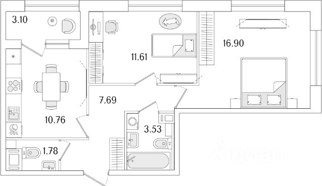 Продаётся стильная квартира 3Евро формата с двумя изолированными комнатами в ЖК ЦДС "Черная Речка.