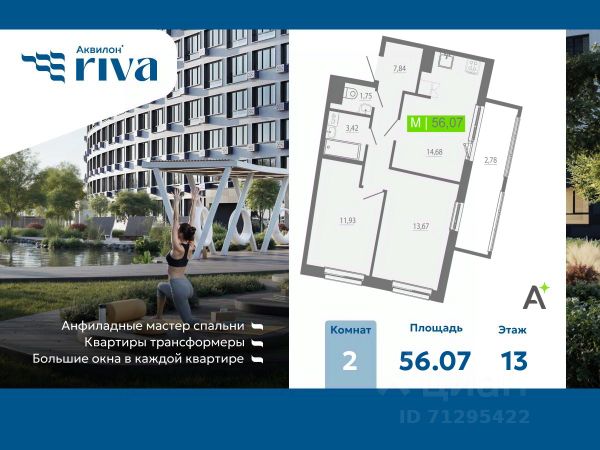 Продаётся 2-комн. квартира площадью 54,77 кв.м на 13 этаже 15 этажного дома (Корпус 5, Секция 1) проекта ПИК Заречный парк. Светлый просторный подъезд на уровне земли, функциональная планировка, большие окна, c отделкой. Жилой квартал "Заречный парк" расположен в районе Новое Девяткино Ленинградской области. В 7 минутах на автомобиле - станция метро "Девяткино", до КАД - 10 минут на машине. В 2026 году будет достроена шестиполосная трасса в обход Мурино, примыкающая к Пискарёвскому проспекту. Она станет дополнительным выездом на КАД для жителей "Заречного парка". Проект включает восемь домов высотой от 15 до 24 этажей, три многоуровневых паркинга, детский сад и школу. В зелёных дворах-парках будут оборудованы современные детские и спортивные площадки, обустроены места для отдыха. На первых этажах разместятся магазины, кафе и другие сервисы. Планировки продуманы так, чтобы каждый квадратный метр жилой площади можно было эффективно использовать. Все квартиры сдаются с готовой отделкой. Артикул 1021751 (Застройщик ООО "СПЕЦИАЛИЗИРОВАННЫЙ ЗАСТРОЙЩИК ИНВЕСТАЛЬЯНС") [cn_sbp_1822110]