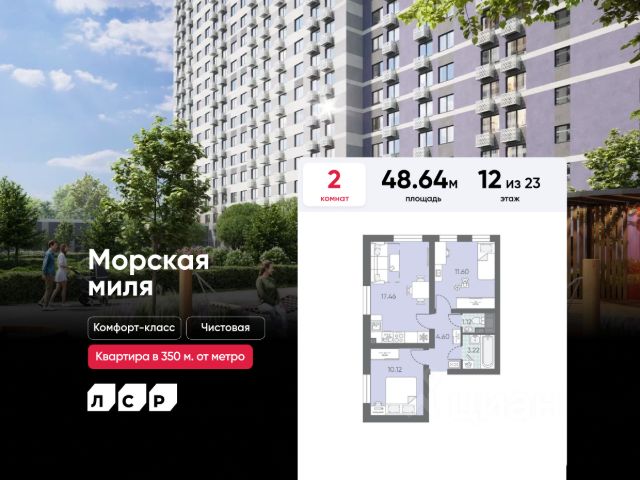 Продается 2-комнатная квартира в ЖК "Морская миля" на 13 этаже. Общая площадь составляет 48.63 кв. м. Квартира с чистовой отделкой. Жилой комплекс "Морская миля" располагается по адресу Санкт-Петербург, Красносельский. Морская миля - жилой комплекс в Красносельском районе Санкт-Петербурга. Расположение комплекса - его главное преимущество: близость к таким историческим памятникам и местам, как Петергоф, Павловский дворец и Царское село позволяет в любой момент насладиться красотами культурной столицы России. Расположение: - всего 350 м до новой станции метро "Юго-Западная"; - 20 минут до Петергофа на автомобиле; - 20 минут до аэропорта "Пулково" на автомобиле; - 30 минут до Царского села на автомобиле. Между корпусами расположены спортивные и детские площадки, пешеходный бульвар. В квартире выполнена полная отделка "Comfort Wood" из качественных материалов: прочный ламинат цвета благородного дуба, фактурные белые обои, керамическая плитка в ванной. Вход в парадные расположен на уровне земли и создает доступную среду для пожилых людей, людей с ограниченными возможностями и мам с колясками. На этажах и в подвале есть кладовые, которые позволят освободить пространство квартиры от лишних вещей. Первые этажи отведены под магазины и колясочные. На территории комплекса находятся наземные паркинги, гостевые парковки, детский сад, школа. В пешей доступности расположены магазины, кафе, аптеки и прочие удобства, необходимые для спокойной и комфортной жизни. Во дворах устроены пешеходные зоны, дворы озеленены и благоустроены: имеются тенистые аллеи, уютные зоны для отдыха детей и взрослых, а также стильные плей-хабы. Преимущества: - Станция метро в пешей доступности - Пешеходный бульвар - Близость к памятникам культуры и архитектуры - Школа и детский сад во дворе - Доступная среда Успейте приобрести квартиру на выгодных условиях! Чтобы узнать подробности, обращайтесь за консультацией по телефону.