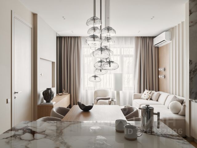 Пространство пентхауса продумано до мелочей. Функциональная планировка включает просторную гостиную с выходом на открытую террасу, кухню-столовую с панорамным остеклением, четыре спальни (в том числе мастер-спальню с гардеробной и ванной комнатой), три санузла, бытовую комнату и вторую террасу. Отсутствие несущих перегородок внутри квартиры позволяет воплотить в реальность индивидуальную планировку мечты.