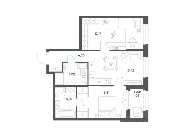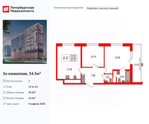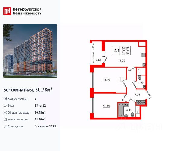 Продается уютная 2-комнатная квартира от застройщика в жилом комплексе "Город звезд" в новом городе на правом берегу Невы. До метро можно добраться на транспорте всего за 13 минут. Удобная, классическая, функциональная европланировка, большая кухня-гостиная 15.22 м², вместительная прихожая 7.25 м². Общая площадь квартиры - 50.78 м², жилая 22.59 м², высота потолка 2.77 м. Квартира продается с отделкой "NORD LINE WHITE". Что особенного в ЖК "Город звезд"? • Инновационный Лицей Setl с оригинальной архитектурной концепцией и уникальной образовательной средой • Невский лесопарк под окнами - всегда свежий воздух и полноценный отдых на природе • Четыре тематические площади отдыха с разнообразным благоустройством • Аллея Звёзд - променад протяженностью 5 км с ландшафтным озеленением, зонами отдыха и велодорожкой • Выход на набережную реки Утки, где можно порыбачить или взять напрокат лодку • Единая входная группа с ресепшен и подземный паркинг